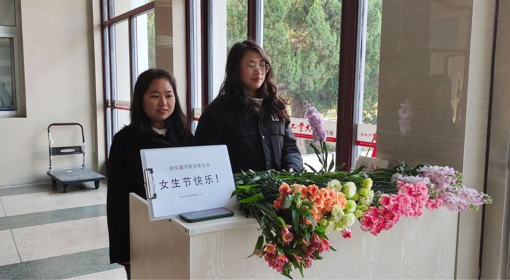冰雪消融,春风和畅。为丰富校园生活,营造更加“阳光、友爱”的校园节日氛围,zoty中欧3月7日在科技楼一楼组织了一场别开生面的“青春主旋律,魅力女生节”送花活动。