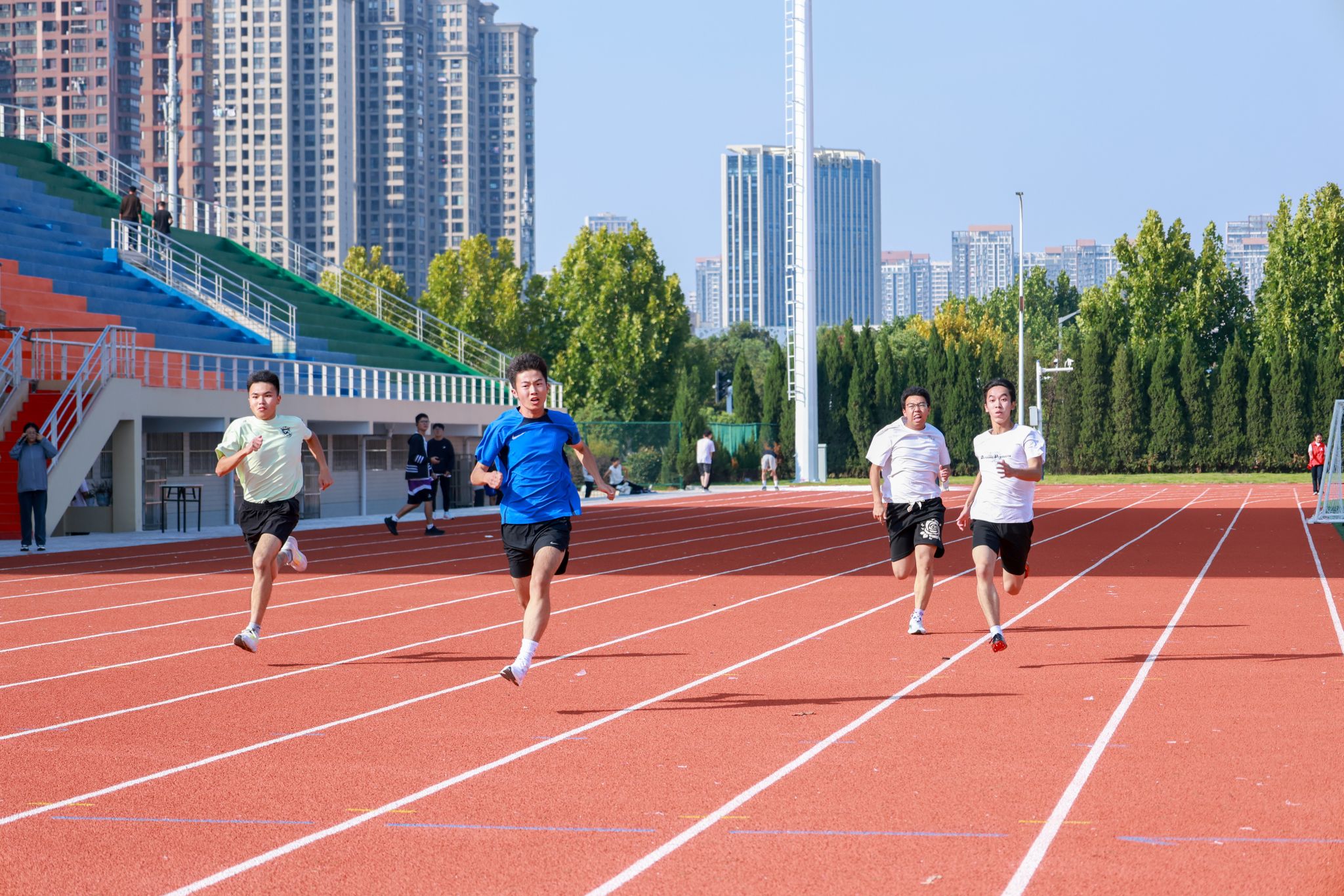 本次体育文化节设置了校运会选拔类项目和趣味项目,涵盖了短跑、长跑、跳远等多项比赛。绿茵场上竞争激烈,运动员们奋力拼搏,不断挑战自我。田径项目中,选手们如离弦之箭,全力冲刺,现场加油声此起彼伏,气氛热烈。跳远项目中,运动员的腾空宛如一只蓄力待发的弹簧,带着坚定的眼神和勇往直前的决心,展示出惊人的控制力。集体跳绳项目中,同学们团结友爱,脚步同频,合作默契,满载青春乐趣。蛟龙出海项目中,同学们目光坚定,每一步的迈出,都是一次对默契的考验。比赛场边,工作人员与志愿者们的身影无处不在,默默奉献,为运动员提供坚实的后盾。