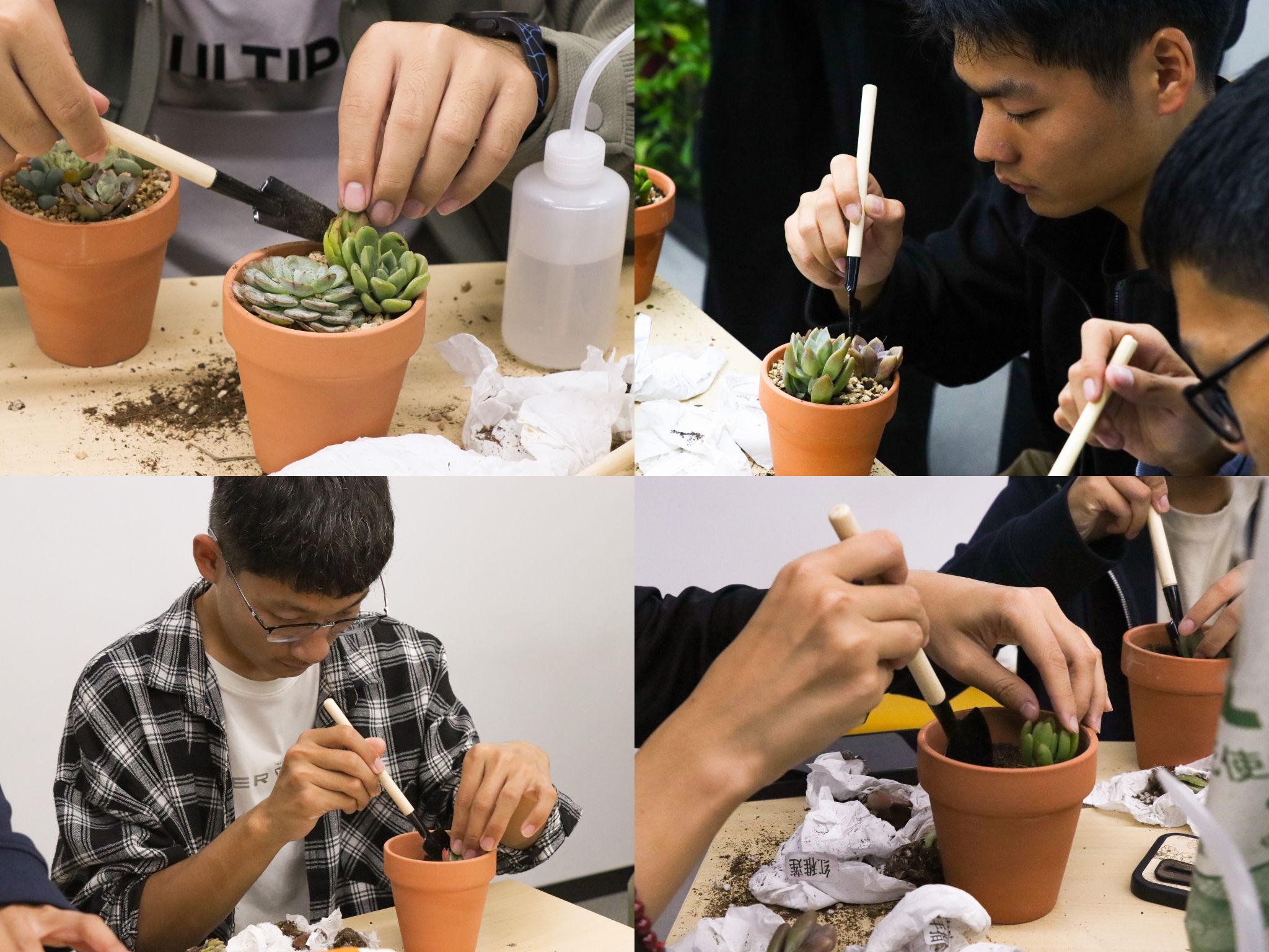 经过一个多小时的努力,同学们都完成了自己的多肉盆栽作品。大家纷纷表示这次多肉栽培活动不仅是一次有趣的手工体验,更是一次心灵的洗礼。后续他们将用心对待栽培好的植物,与它们共同成长。